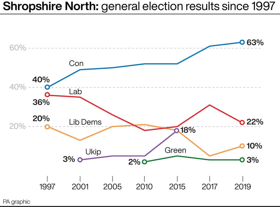 North Shropshire has returned a Tory MP in every vote since 1983 which was the constituencys first election in its current form. The news comes after Owen Paterson resigned as MP for. The area has been true blue only twice voting for another colour.